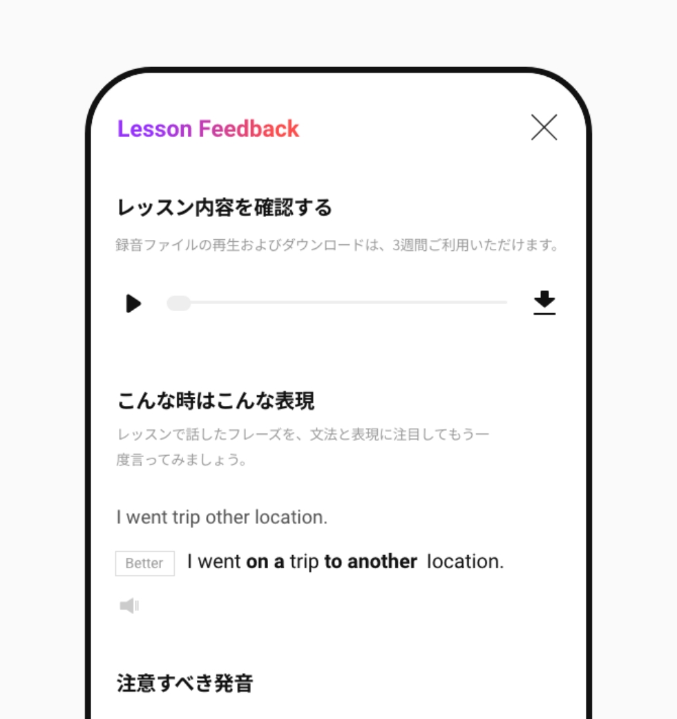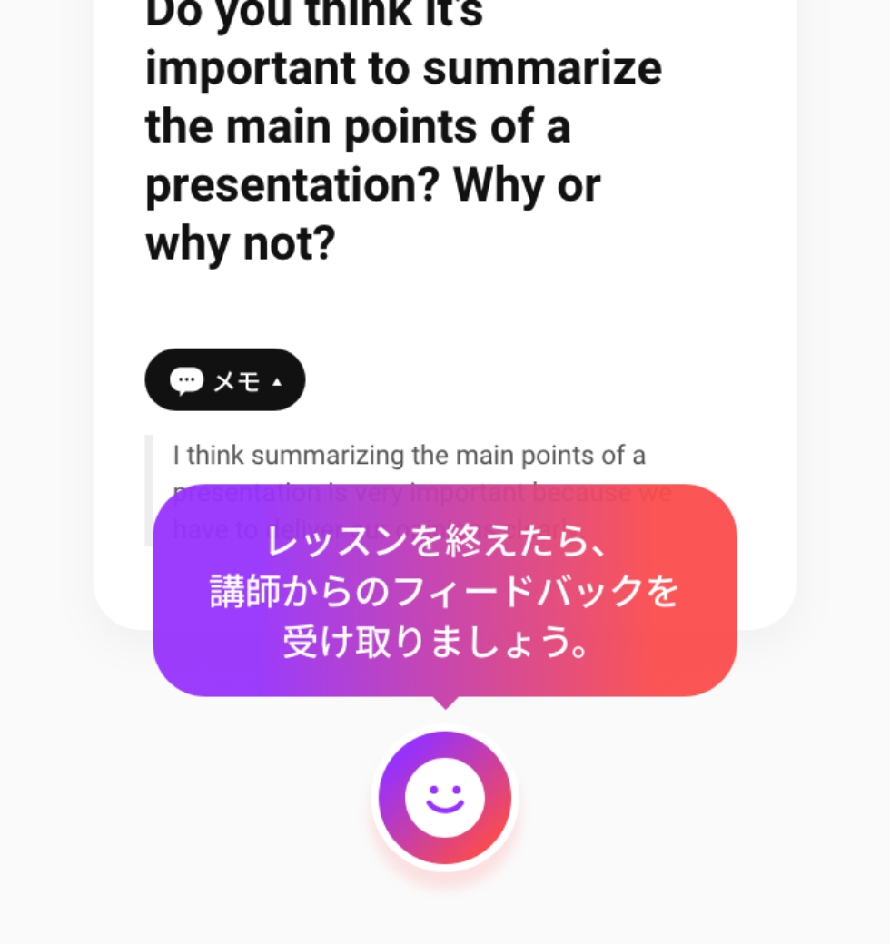 講師フィードバックが届きますレッスン中は、レッスンにだけ集中するのがベスト!