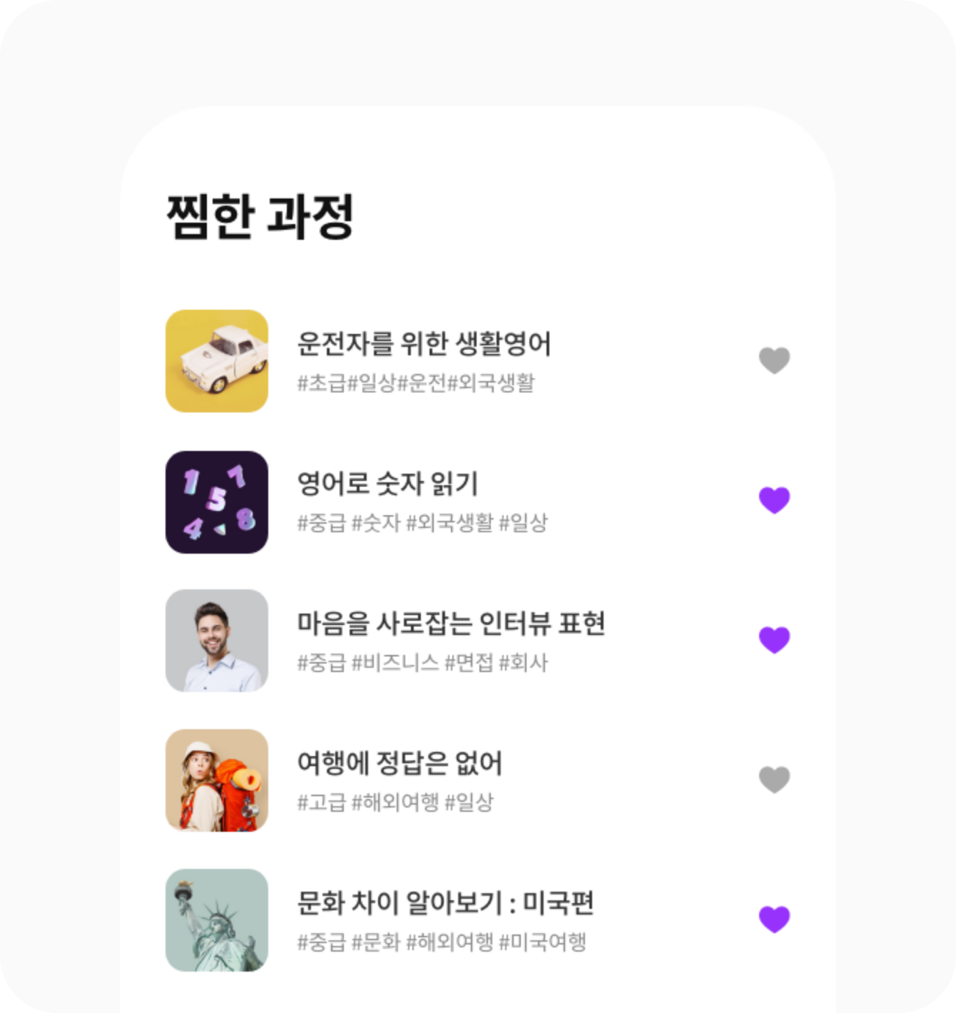 찜해보세요. 내가 좋아하는 주제로 말하며 배우는